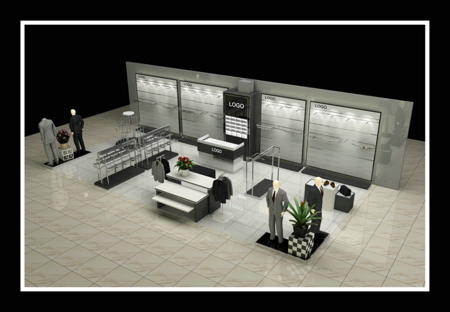 鞏義站街服裝店男裝展柜設(shè)計完成